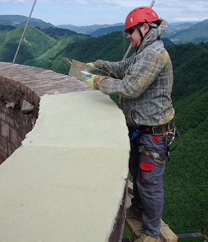 Поэтапно проводится кладка и образуется ствол: минимальная толщина стенок составляет 180 мм, данный показатель увеличивается по направлению сверху вниз. Для практического обеспечения необходимой устойчивости и прочности рекомендуется выбирать трубы в форме конуса. Как правило, в цоколе возле газового котла обустраиваются окна для отвода газов.
